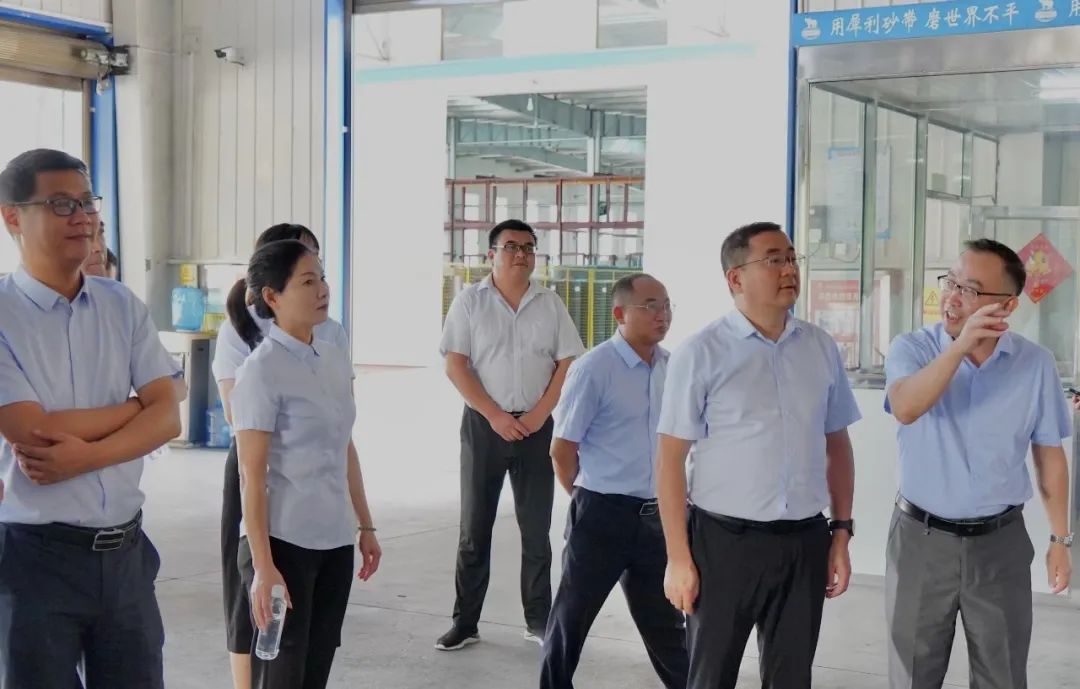 在黎俊彥的帶領(lǐng)下,張偉、田墨文一行還先后參觀了玉立紡織區(qū)、智能砂帶區(qū)、新砂帶二區(qū)、光伏發(fā)電區(qū)、智能倉庫。