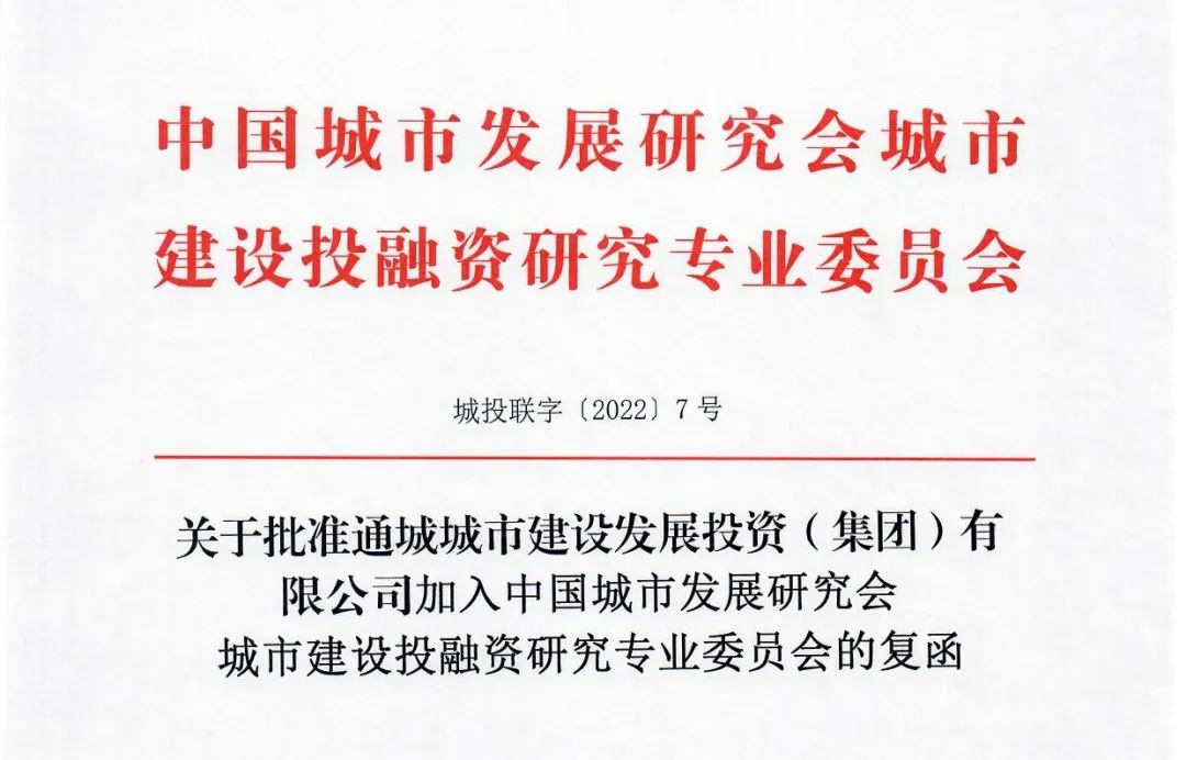近日,中國(guó)城市發(fā)展研究會(huì)城市建設(shè)投融資研究專(zhuān)業(yè)委員會(huì)(簡(jiǎn)稱(chēng)“全國(guó)城投協(xié)會(huì)”)發(fā)來(lái)復(fù)函,批準(zhǔn)通城城發(fā)集團(tuán)加入全國(guó)城投協(xié)會(huì)。根據(jù)全國(guó)城投協(xié)會(huì)章程第一條:中國(guó)城市建設(shè)投融資研究會(huì)是全國(guó)地...